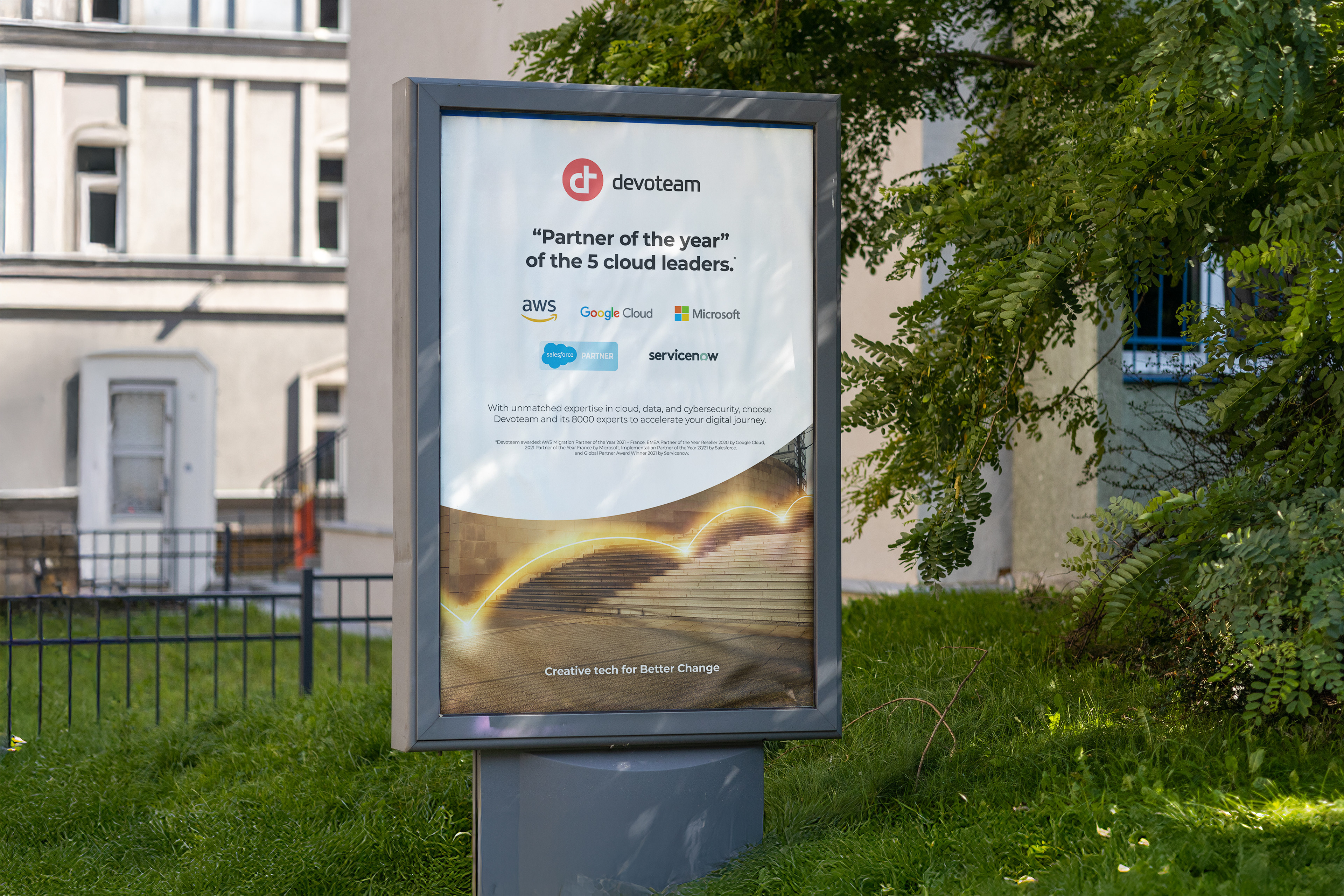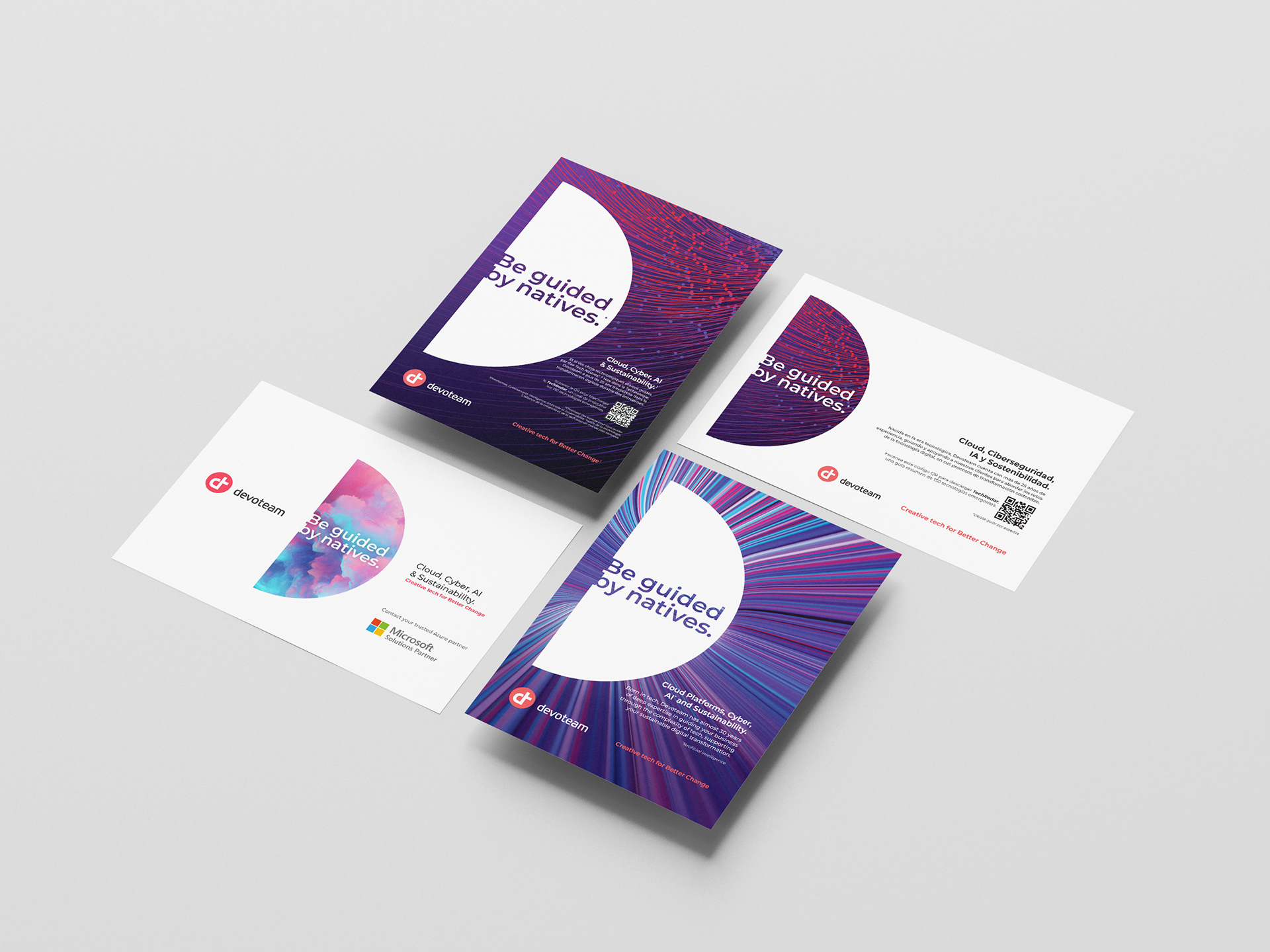 At Devoteam, I developed and adapted advertising campaigns across digital and print formats, many of which were rolled out in multiple countries across EMEA.